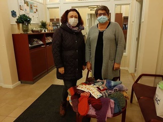 To 03.12.20 yhdistyksen pj Raija Fingerroos ja sihteeri Helena Alanne veivät perinteiset joulumuistamiset Leppävirran seurankunnan diakoniatyölle yhdistyksemme jäsenten neuolomia miesten, naisten ja lasten sukkia sekä lohtuhuivia.