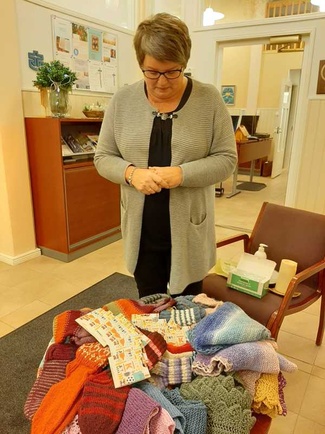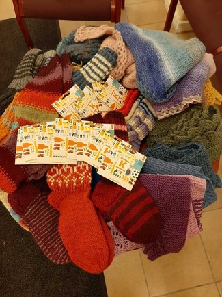 Lämmin kiitos Sinulle neuloja Martta, joka teit jälleen mahdolliseksi lahjoittaa villasukkia ja lohtuhuiveja seurakunnalle.