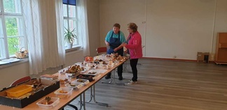 Rauni ja Pirjo Salmitalolla sienineuvontaa antamassa. Kuvassa Salmitalon emäntä Raija Ikonen ja Rauni