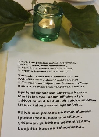 Suununtaina 15.10 vietetiin marttojen kirkkopyhää. Osa martoistamme osallistui Vanhassa pappilassa tarjottavan lounaan valmisteluihin.