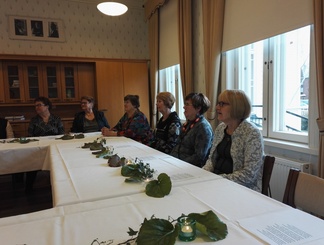 ![]() Leppävirran martat järjestivät täysiä kymmeniä vuosia täyttäville jäsenilleen yhteiset syntymäpäiväjuhlat vanhassa pappilassa sunnuntaina 22.10.17 Juhlan järjestelyä. |