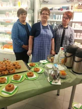Martat kahvittamassa Leppävirran apteekissa