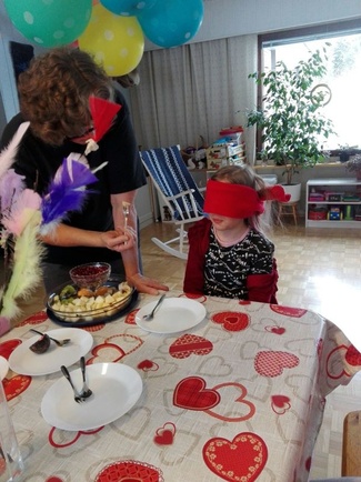 La 24.3. pikkumartat kokoontuivat askartelemaan virpomisvarpuja ja sokkomaistelivat hedelmiä