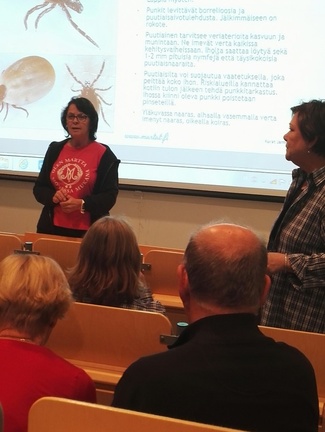 Yleisön joukosta tuli myös hyviä vinkkejä mm. sokeritoukkien pyydystämiseen ilmastointiteipin avulla. Porukalla mietittiin, että ilmastointiteippi voisi toimia myös hirvikärpäspyydyksenä. Lisäksi kuulimme monia hersyviä muisteluja mm. russakoista, jotka olivat kiivenneet nälissään hissikuilua myöten terveyskeskuksen keittiöön. Yöhoitajilla oli ollut hieman epätavallinen toimenkuva sinä yönä russakkajahdissaan.