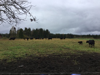 ![]() Aberdeen Angnus -laumassa laiduntaa on yksi sonni ja lehmiä, joilla on vasikat. |