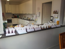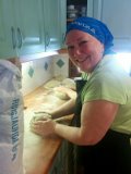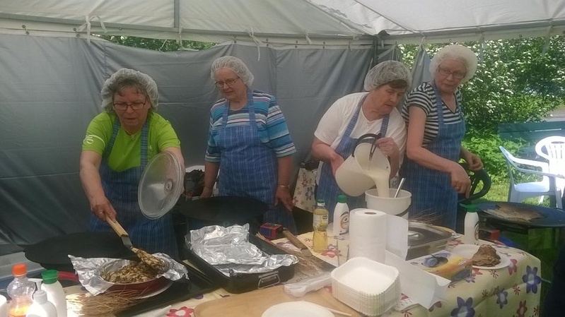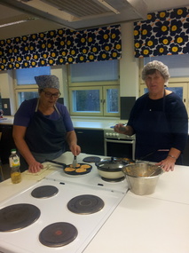 ![]() Lähetyslounaan työntekijät | ![]() Vööbe ja Maija paistamassa juures-juustopihiviä | ![]() Kaarina Monni |