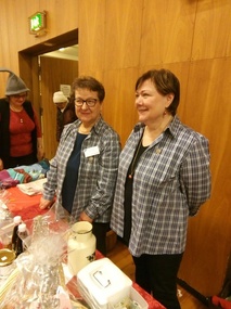 ![]() Lahjoitimme seurakunnan diakoniatyölle lahjakortteja. Vööbe, diakoni Pia Huovinen, ja Raija | ![]() Järjestöjen joulumyyjäisissä 16.12.17 Raili ja Raija | ![]() Sinivalkoisia vauvansukkia on jo neulottu |
