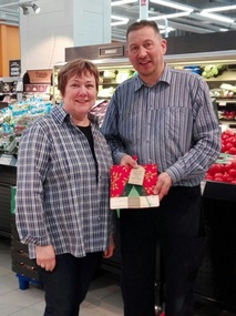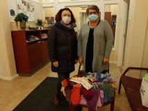Diakonille lahjoitus 031220 |  Raija ja diakoni Pia 031220 |  Diakoni Pia 031220 |